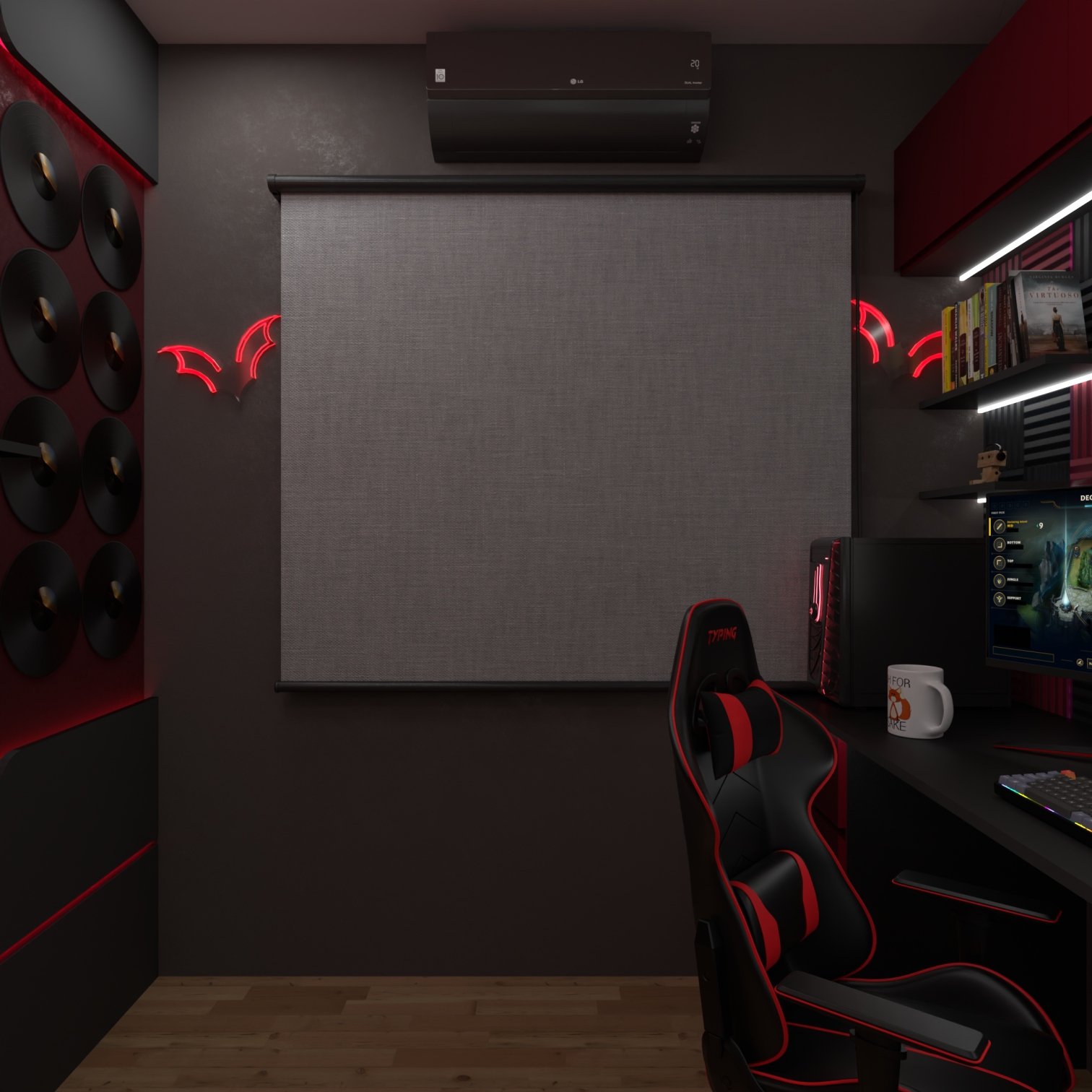 O projeto demonstra uma compreensão clara do estilo de vida gamer, traduzindo-o em um ambiente personalizado, funcional e esteticamente coeso. A atmosfera futurista e vibrante, reforçada pela escolha de cores, iluminação e elementos decorativos, cria uma experiência imersiva e convidativa para os entusiastas de jogos.