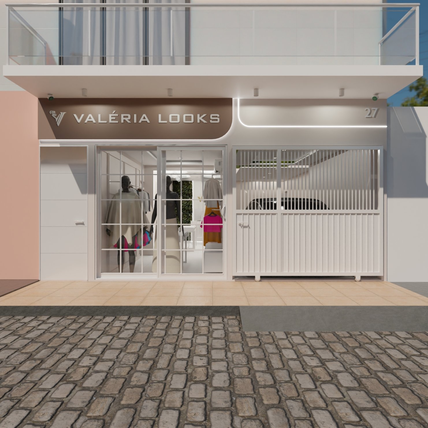 A ampliação da loja de roupas Valéria Looks representa um passo significativo para oferecer um espaço comercial moderno e convidativo, destacando-se tanto na fachada quanto no interior com uma estética clean e elegante.